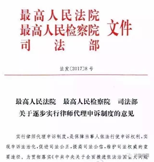 強(qiáng)制律師代理制度來(lái)了?最高法院新規(guī):申訴案件要由律師代理進(jìn)行(附:文件全文)||福州刑事辯護(hù)律師推薦 福州律師辦案必備發(fā)布者 福州律師網(wǎng)2017年4月24日強(qiáng)制律師代理制度來(lái)了?最高法院新規(guī):申訴案件要由律師代理進(jìn)行(附:文件全文)||福州刑事辯護(hù)律師推薦 ???最高人民法院詳情