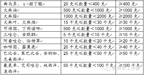 毒品犯罪數(shù)量標(biāo)準(zhǔn)一覽表(根據(jù)2016年4月11日新司法解釋制定)