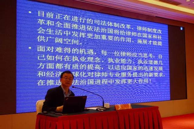 ? ? ? ?第三場(chǎng),原中央司法體制改革領(lǐng)導(dǎo)小組辦公室副主任、中央政法委政法研究所所長,現(xiàn)天津大學(xué)法學(xué)院黃太云教授以“本輪司法體制改革的主要任務(wù)及試點(diǎn)推進(jìn)情況”為題做專題講座。他用大量司法實(shí)踐活動(dòng)和豐富理論,用獨(dú)到的觀察視角和思考研究方式,進(jìn)行了深刻闡述,以審判中心主義的司法體制改革為切入點(diǎn),探討對(duì)司法行業(yè)、律師行業(yè)的全面改革。為我們進(jìn)一步的探索和開展司法體制改革工作打開了新思路。
