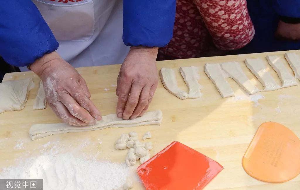 正在制作油條的商販。圖片來自視覺中國