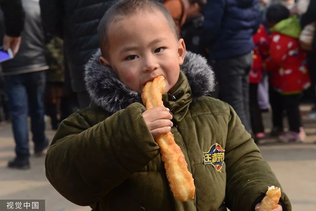 吃油條的孩子。圖片來自視覺中國