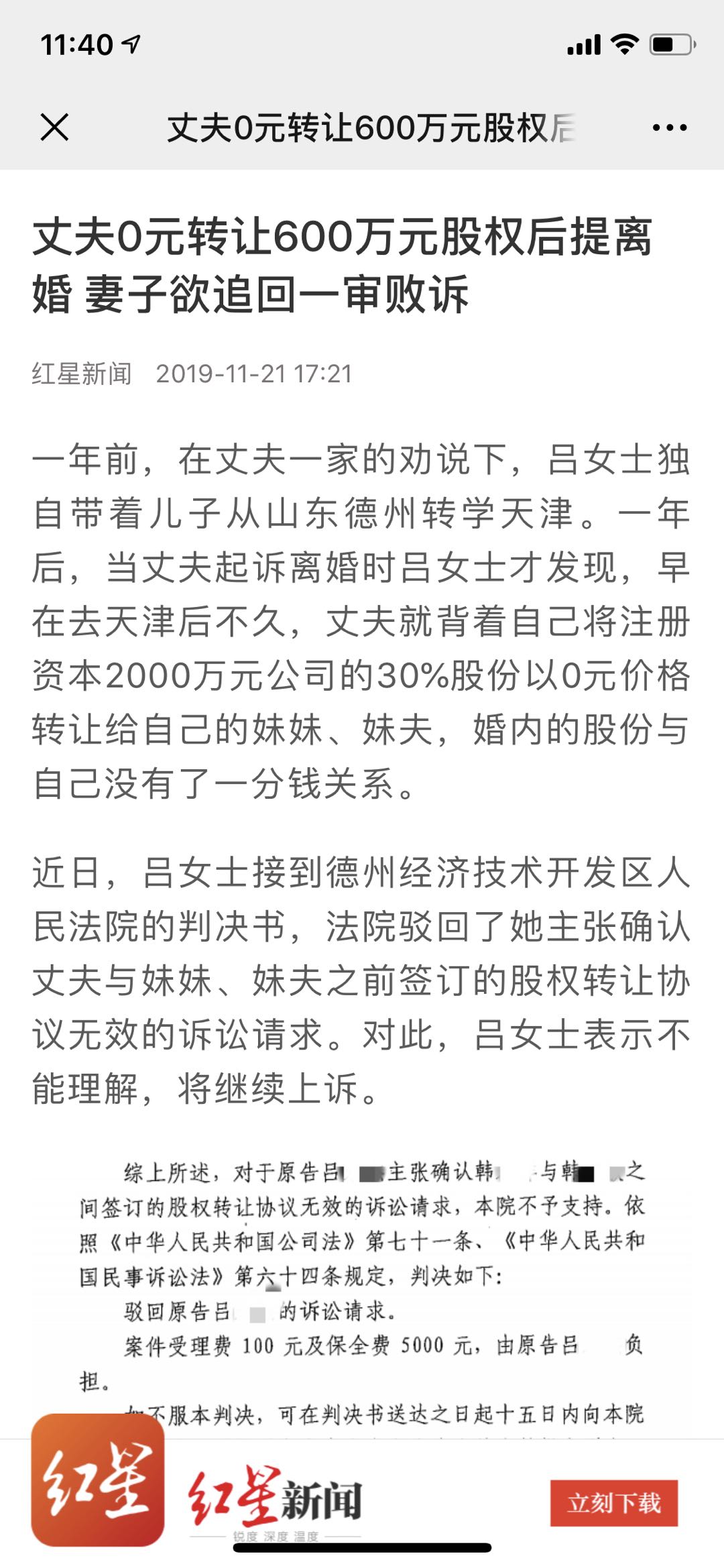 2019年11月21日,紅星新聞邀請(qǐng)上海錦天城福州律師事務(wù)所合伙人蔡思斌律師針對(duì)一起離婚案件股權(quán)轉(zhuǎn)讓協(xié)議效力發(fā)表法律觀點(diǎn),新聞標(biāo)題為《丈夫0元轉(zhuǎn)讓600萬元股權(quán)后提離婚 妻子欲追回一審敗訴》。