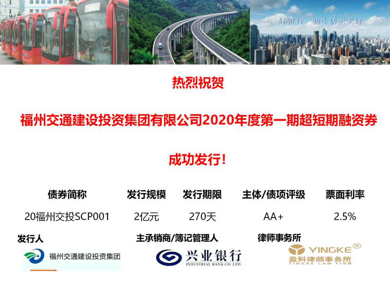 7月1日,盈科律師事務(wù)所鄭覺華律師、尤虹律師、王必勇律師組成專項法律服務(wù)團隊助力福州交投集團超短期融資券成功發(fā)行。